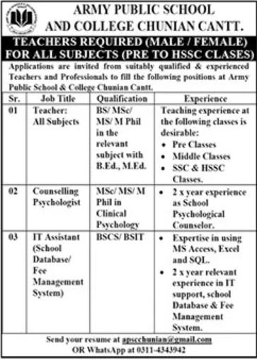 Army Public School & College APS&C Jobs 2025
