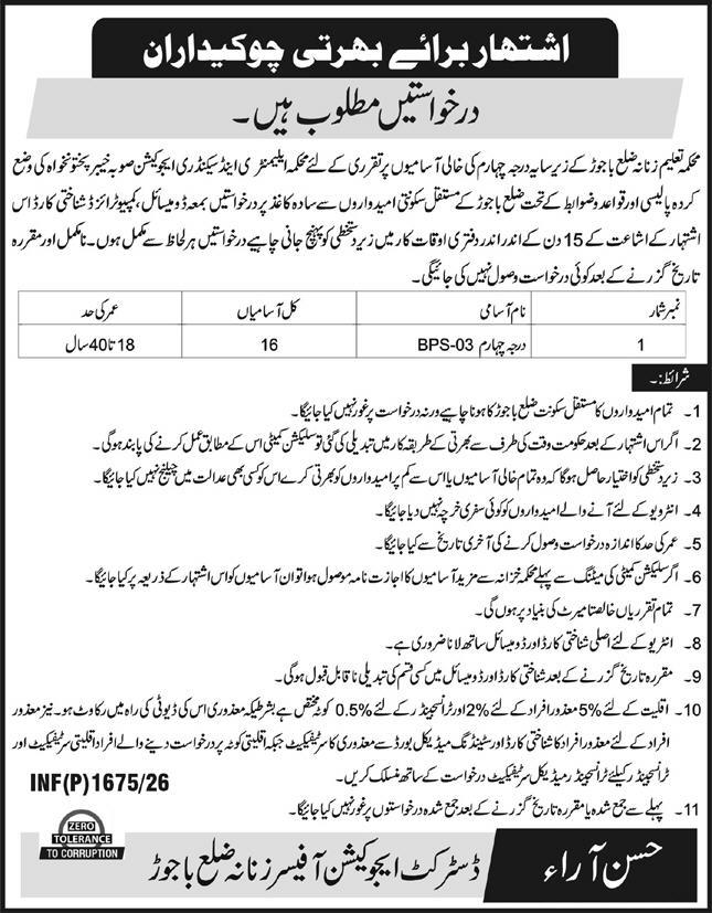 Elementary and Secondary Education Department Chowkidar Jobs 2026