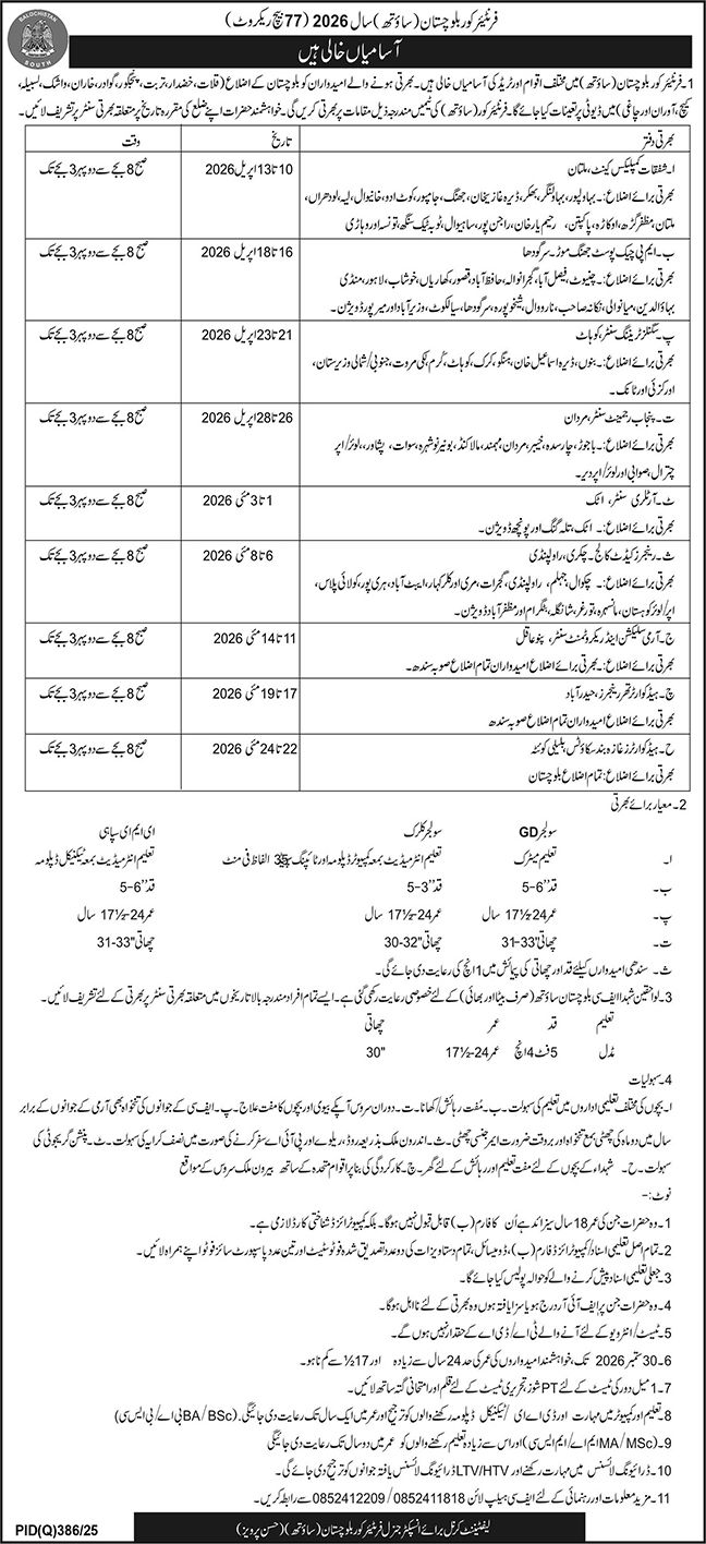 FAQs Frontier Corps Jobs 2026 Advertisement