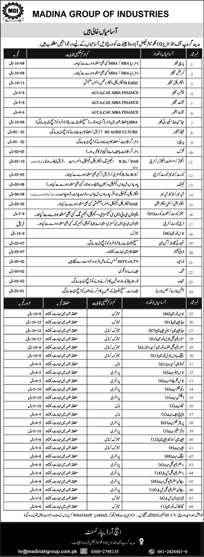 Madina Group of Industries Jobs 2025 Advertisement