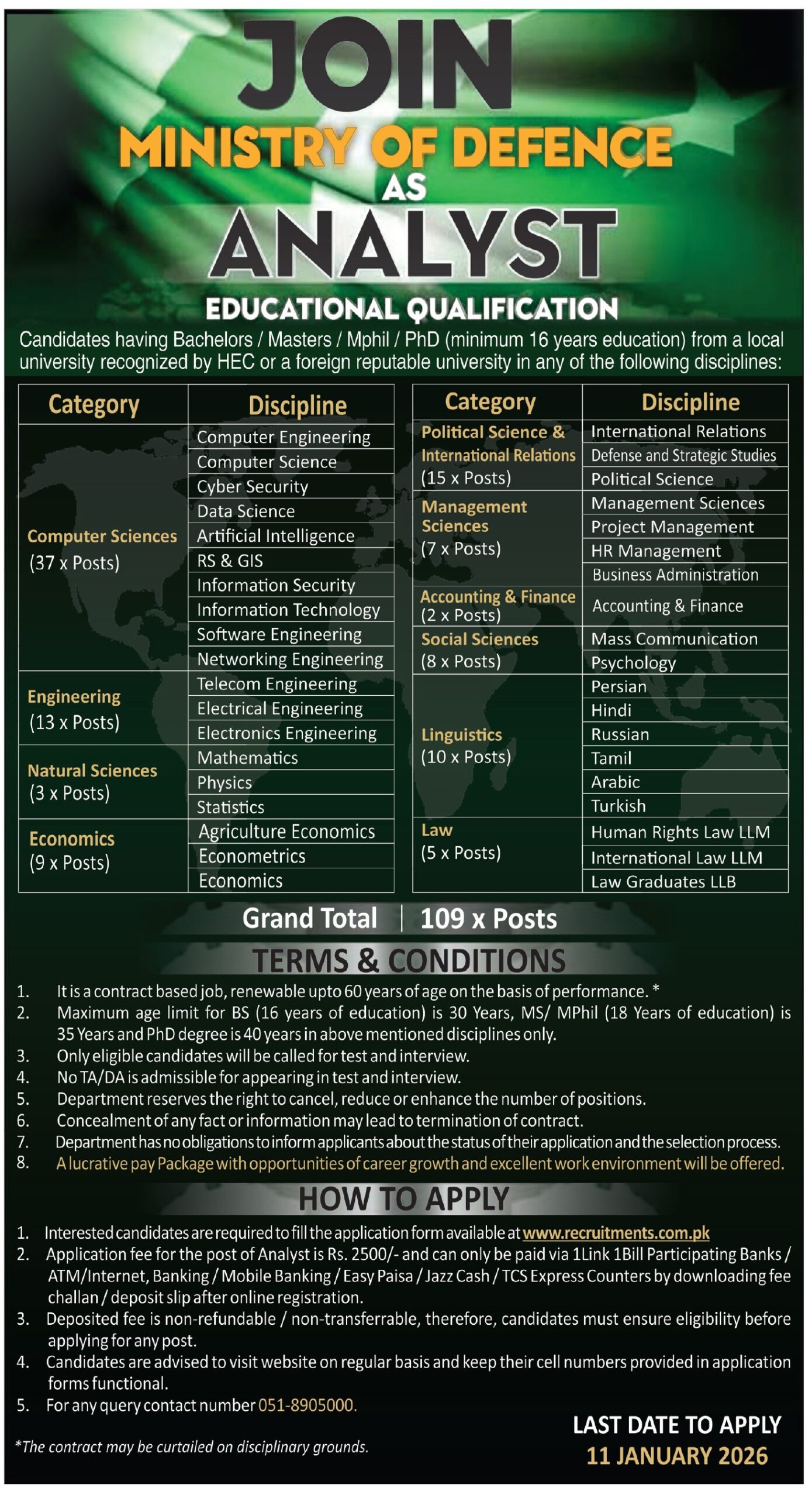 The Ministry of Defence is seeking highly qualified candidates for analytical and strategic roles. Below are the details for the announced position: