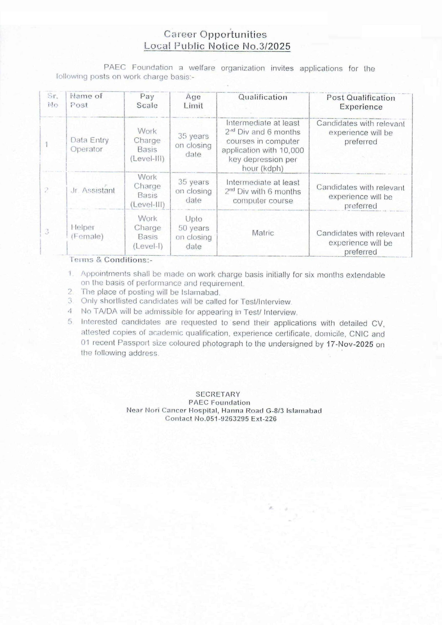 PAEC Foundation Islamabad Jobs 2025 Advertisement Online Apply