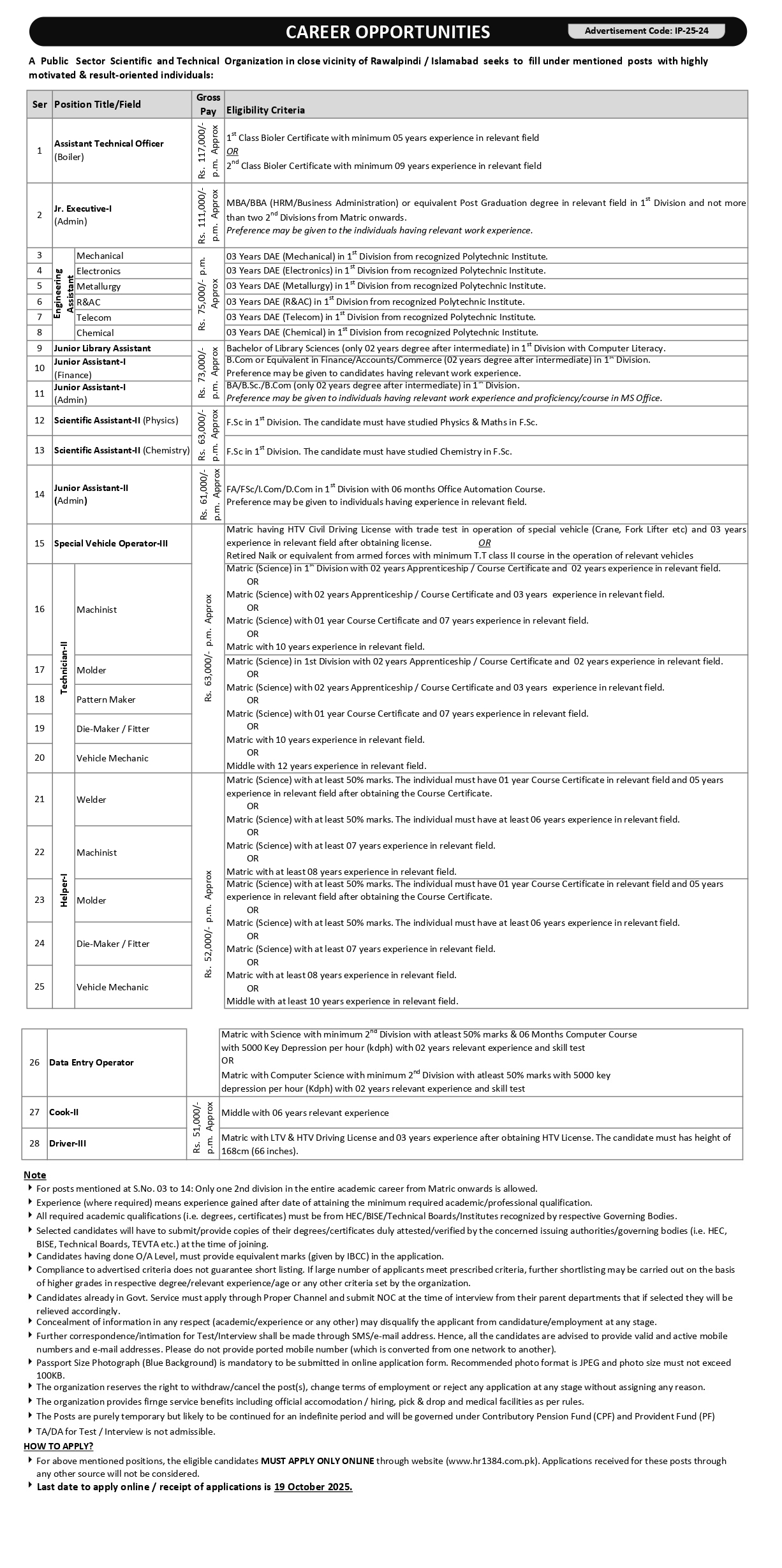 Note: Compliance with criteria does not guarantee shortlisting; further selection may occur based on higher grades, experience, or age. All qualifications must be verified by HEC/BISE/IBCC at joining.