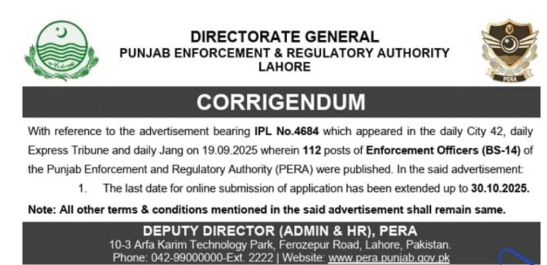 Securing a rewarding government position in regulatory enforcement is a key ambition for many dynamic graduates in Pakistan. The Punjab Enforcement and Regulatory Authority (PERA) has announced exciting career openings for qualified and proactive individuals. The PERA Enforcement Officers Jobs 2025 are now open for applications, offering BPS-14 positions exclusively for eligible males and females from Punjab, with online submissions accepted through the official Government of Punjab Jobs portal.