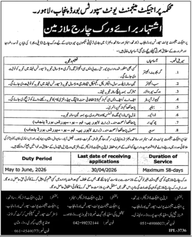 The Project Management Unit (PMU) has announced multiple job opportunities as per an advertisement published in the Daily Nation Newspaper on April 18, 2026. These vacancies are available in Lahore, Punjab, Pakistan, offering excellent opportunities for individuals seeking government jobs in management and support staff categories.