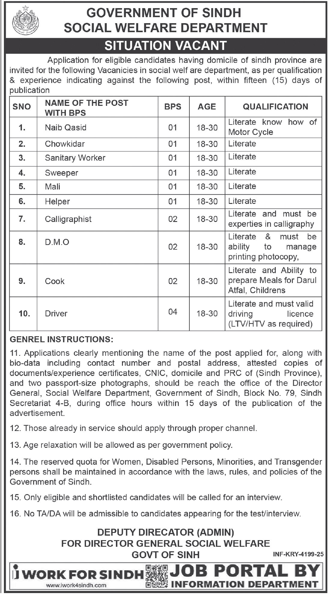 Social Welfare Department Jobs 2025 Latest Advertisement Notice